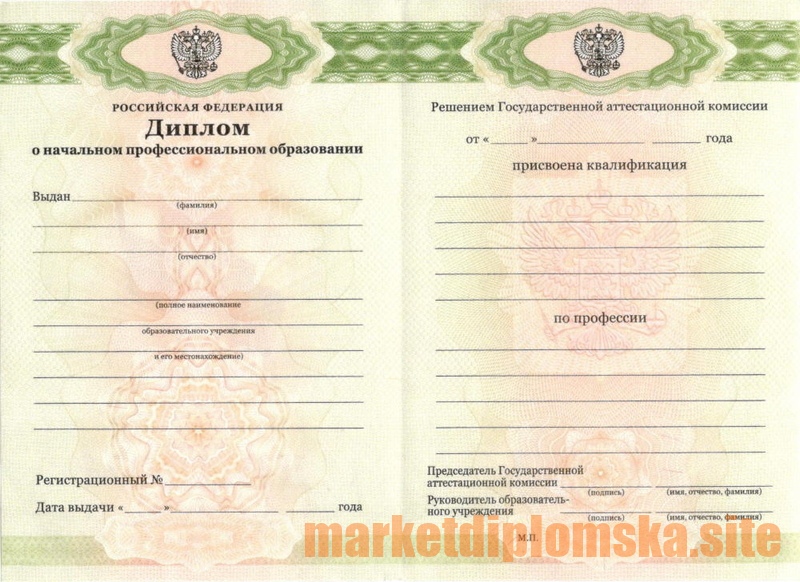 Предлагаем сразу купить диплом училища нового образца, утвержденный государственным стандартом. Этот документ включает в себя титульный и приложение с указанием данных получившего лица, период посещения, приобретенную специальность, присвоенную после обучения классность или разряд. Во вкладыше указано название учебного заведения, выдавшего этот документ и подписи ответственных лиц с мокрой печатью.